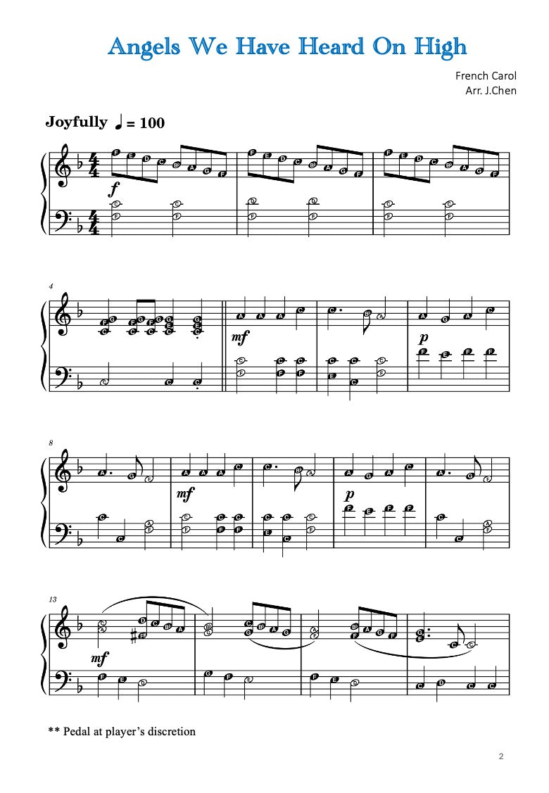 This arrangement of Angels We Have Heard On High is primarily for the early intermediate pianist. You could take a listen to it here.