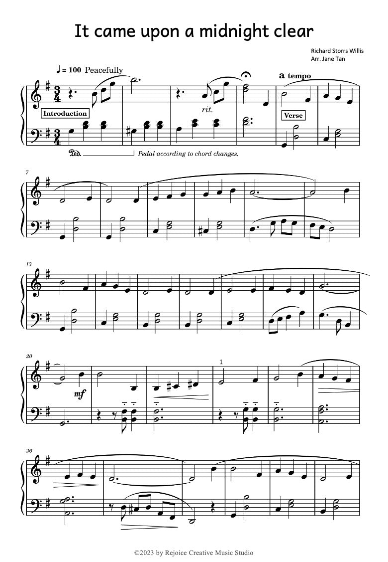 This is an arrangement for the early intermediate pianist. It is written for 2 verses, in D major. The first verse is mainly chordal while the second verse is fuller in texture.