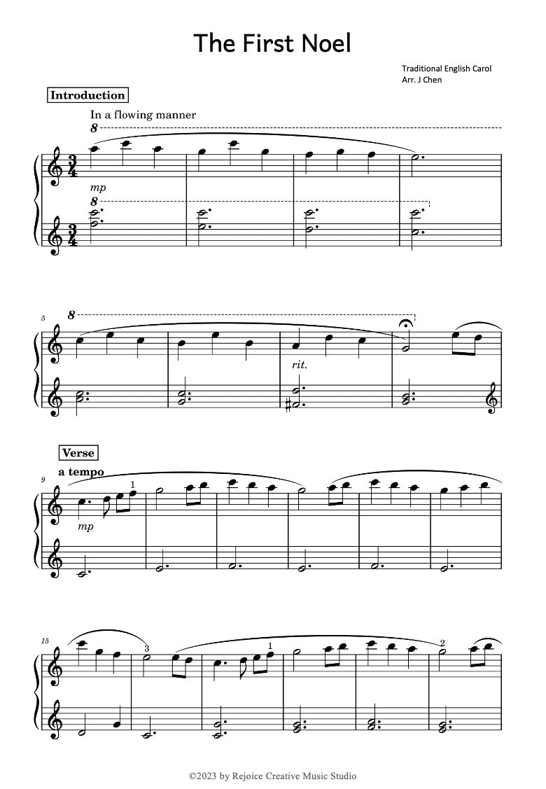 The First Noel is a Christmas classic. This arrangement is primarily for the early intermediate pianist. It starts with a simple accompaniment which broadens towards the end. You could take a listen to it here.